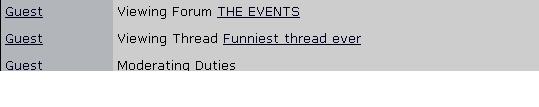 I was looking at the who's viewing what section, and one of the guests was viewing 'moderating duties'. Took a screen grab cos i couldn't be arsed with this wordy explanation, but the pissing picture won't attach. :oops: :oops: