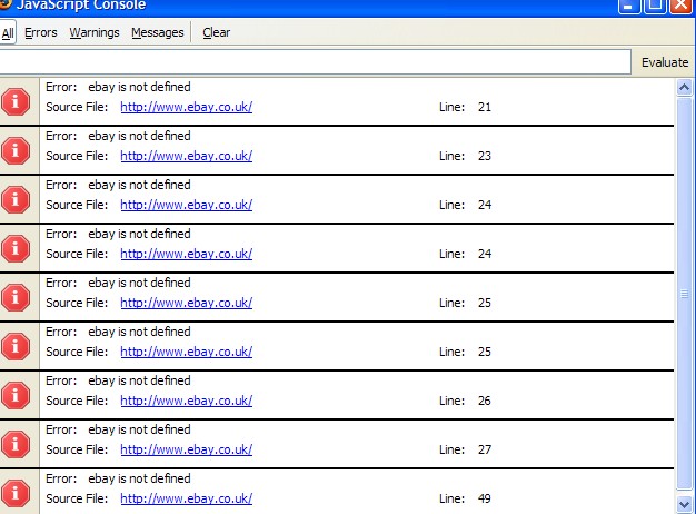 yeah fine, and looking at it further it might be something to do with javascipt, when (in Mozilla) i go to the javascript console it has lots of sites where it says errors, it said ebay.co.uk - not defined? error in line 21, next one 22 next one 23 basically all of them. Any idea how to sort that out?