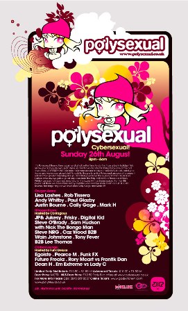 To add to the party antics Polysexual are proud to present yet another ground breaking lineup!! Headlining we have the queen of Hard House Lisa Lashes, who always gets a great response from the Poly faithful. Rob Tissera and Andy Whitby are sure to have you reaching for the lazers with anthems galore. For the filth lovers out there we have Paul Glazby and the well overdue main room debut of Justin Bourne. Not forgetting crowd favourites Cally Gage and Mark H!!