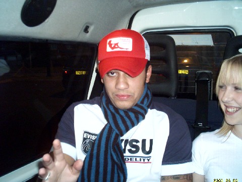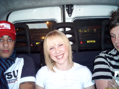 Luke and Emily (Quality Chick) All of us in the taxi slightly drunk on the way to Promise.