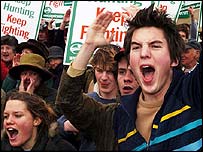 Hunt supporters protest outside the Labour conference in Gateshead