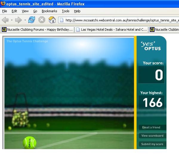 whats your score unfortunately i havent had time to try it but thought i would share it http://www.mcsaatchi.webcentral.com.au/tennischallenge/optus_tennis_site_edited.html have fun